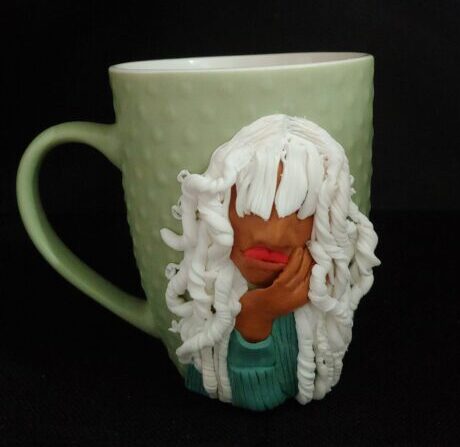 Her crown is her silver-white locs, worn proudly with grace. This mug pays tribute to