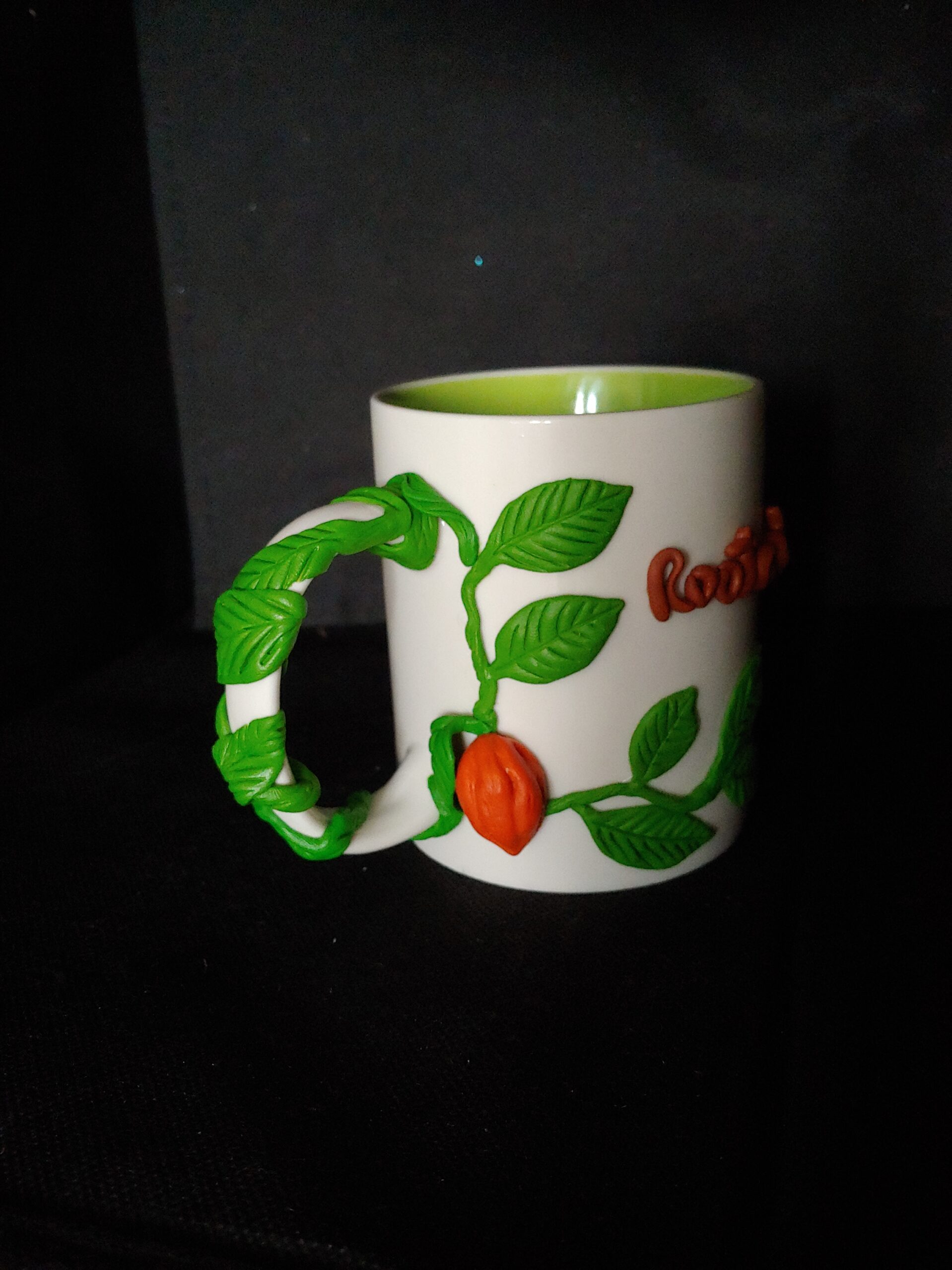 Grounded in strength and heritage, this mug features sculpted cocoa leaves and vines wrapping gracefully around the handle.